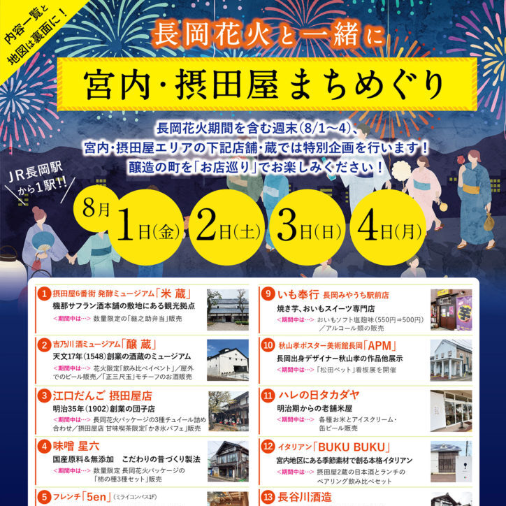 【終了しました】長岡花火と一緒に宮内・摂田屋まちめぐり2025
