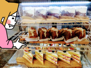 こちらでは常時3種類以上の自家製ケーキが日替わりで並びます。