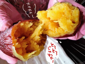 お母さん、 自慢のやきいも、せっかくだから割って見せて~!